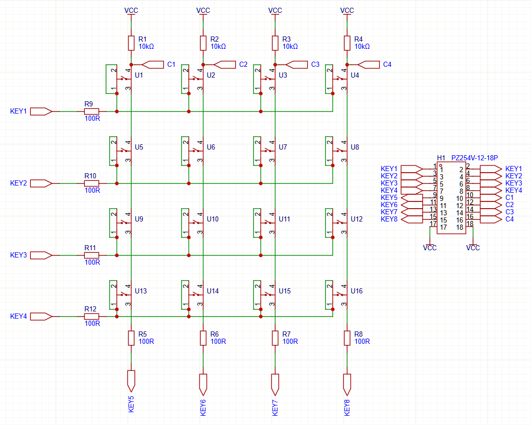 Figure 1. 矩阵键盘原理图